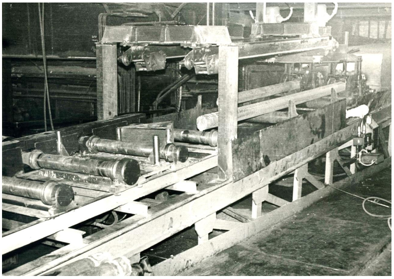 На базе многочисленных экспериментальных и теоретических исследований закономерностей формирования непрерывного слитка и конструкторских разработок, проведенных в ЦНИИЧермете, в 1951 г. на заводе «Красный Октябрь» была введена в эксплуатацию первая в СССР опытно-промышленная установка полунепрерывного литья стали. Проведенные исследования стали