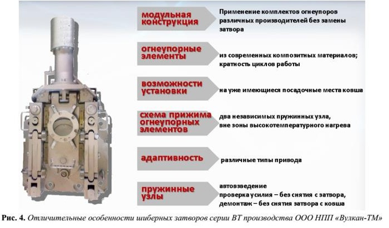 Результатом развития производства современных систем для разливки стали и сплавов стало создание линейки унифицированных шиберных затворов серии ВТ для ковшей от 30 до 380 т (рис. 4).
